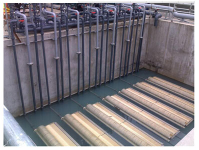 ?。?)調(diào)節(jié)池出水用提升泵提升到缺氧池,同時(shí)經(jīng)過(guò)曝氣硝化過(guò)的污水回流進(jìn)行反硝化脫氮。出水進(jìn)入接觸氧化池,通過(guò)曝氣進(jìn)行好氧生化處理同時(shí)進(jìn)行硝化反應(yīng)。